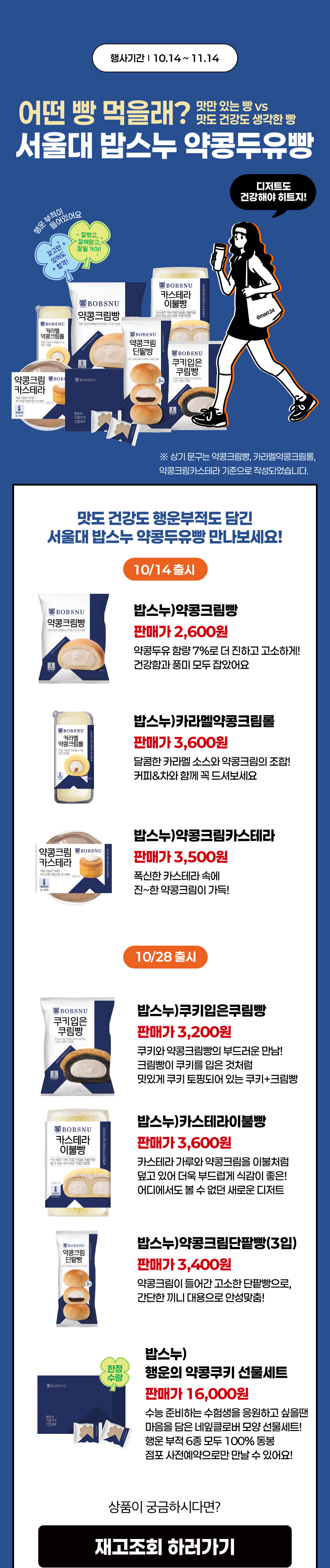 ※ 상기 문구는 약콩크림빵, 카라멜약콩크림롤, 약콩크림카스테라 기준으로 작성되었습니다.