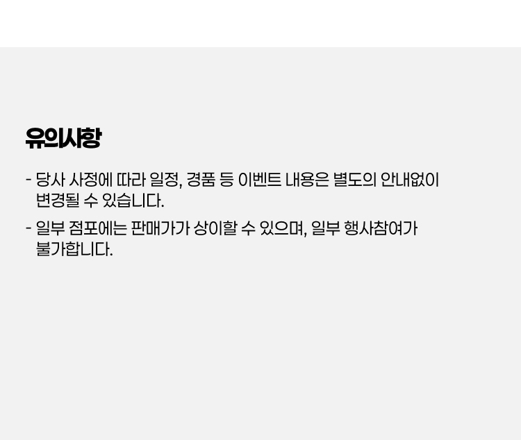 - 일부 점포에는 판매가가 상이할 수 있으며, 일부 행사참여가 불가합니다.
