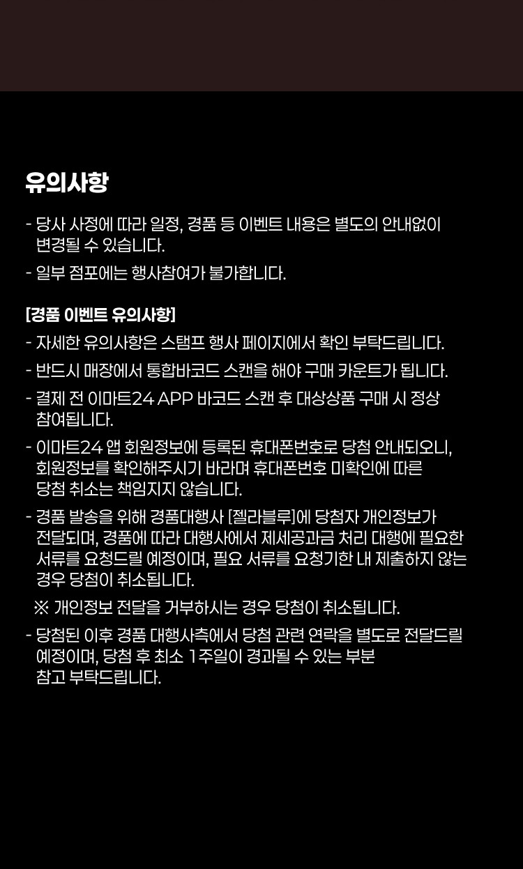 - 자세한 유의사항은 스탬프 행사 페이지에서 확인 부탁드립니다.