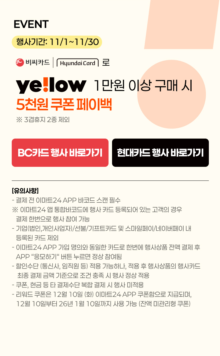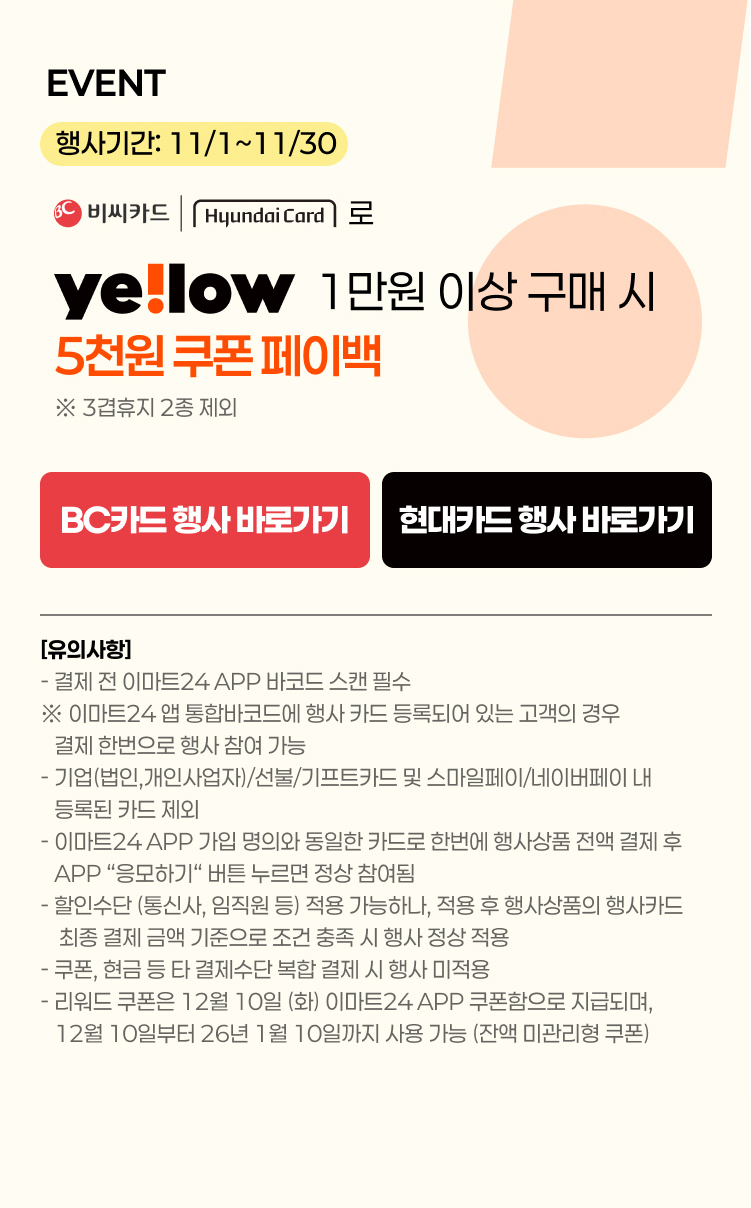 - 쿠폰, 현금 등 타 결제수단 복합 결제 시 행사 미적용