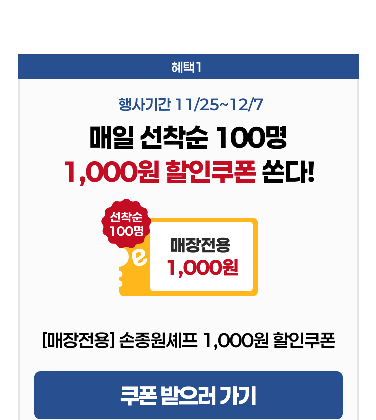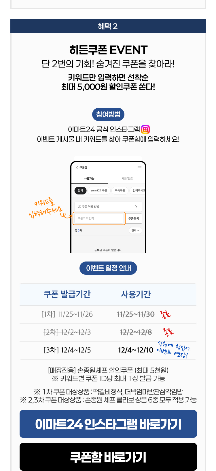 쿠폰 발급기간 : [1차] 11/25~11/26, [2차] 12/2~12/3