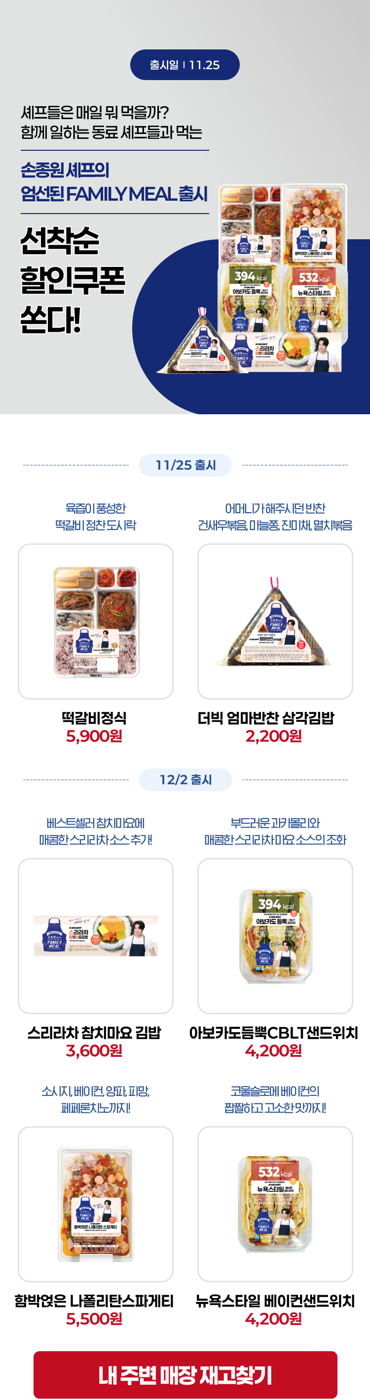※ 1차 쿠폰 대상상품 : 떡갈비정식, 더빅엄마반찬삼각김밥