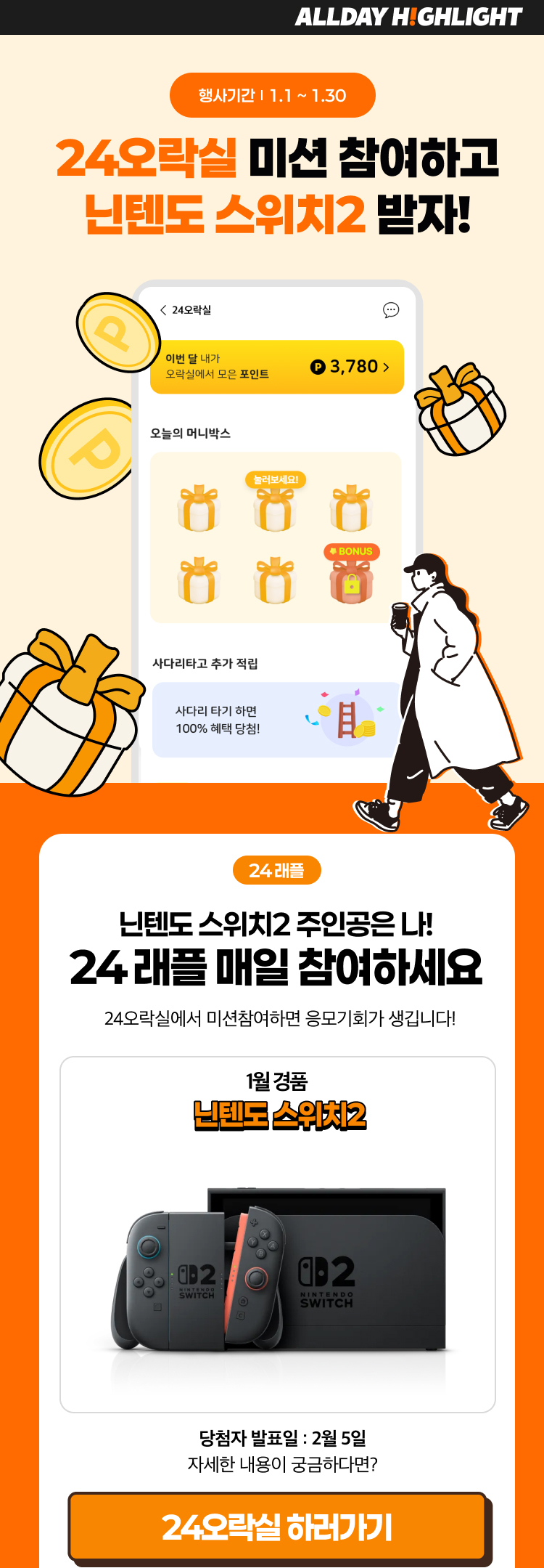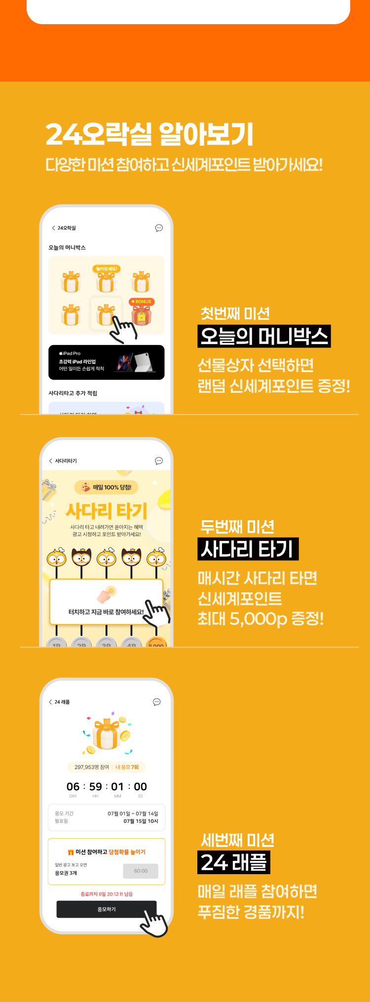 24오락실에서 미션참여하면 응모기회가 생깁니다!
