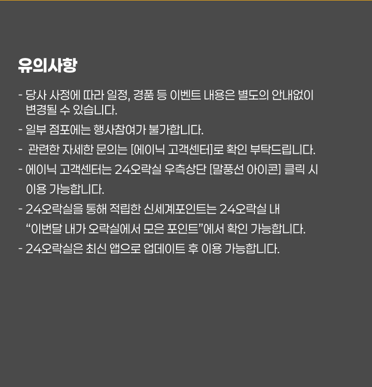 - 당사 사정에 따라 일정, 경품 등 이벤트 내용은 별도의 안내없이 변경될 수 있습니다.