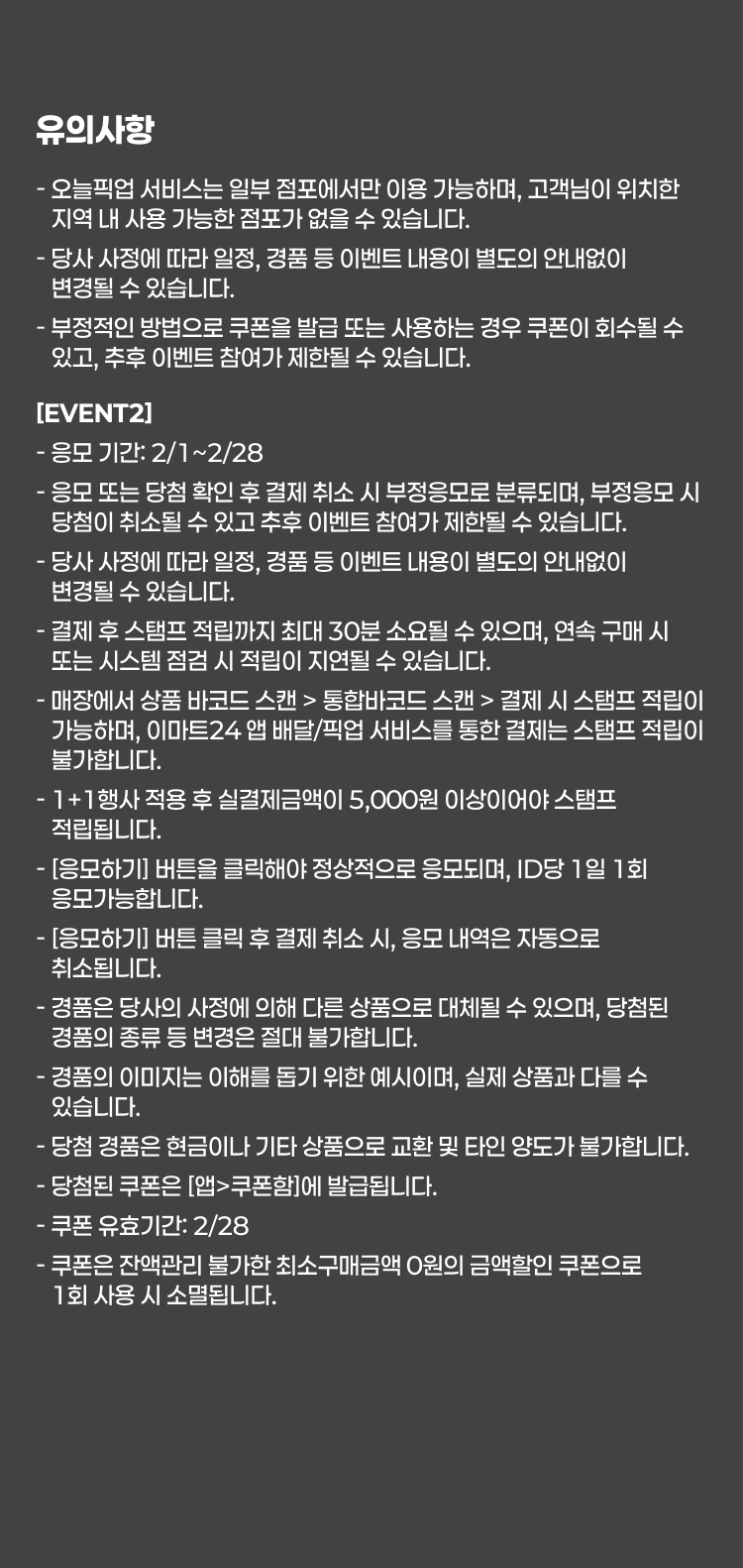 - 당사 사정에 따라 일정, 경품 등 이벤트 내용이 별도의 안내없이 변경될 수 있습니다.