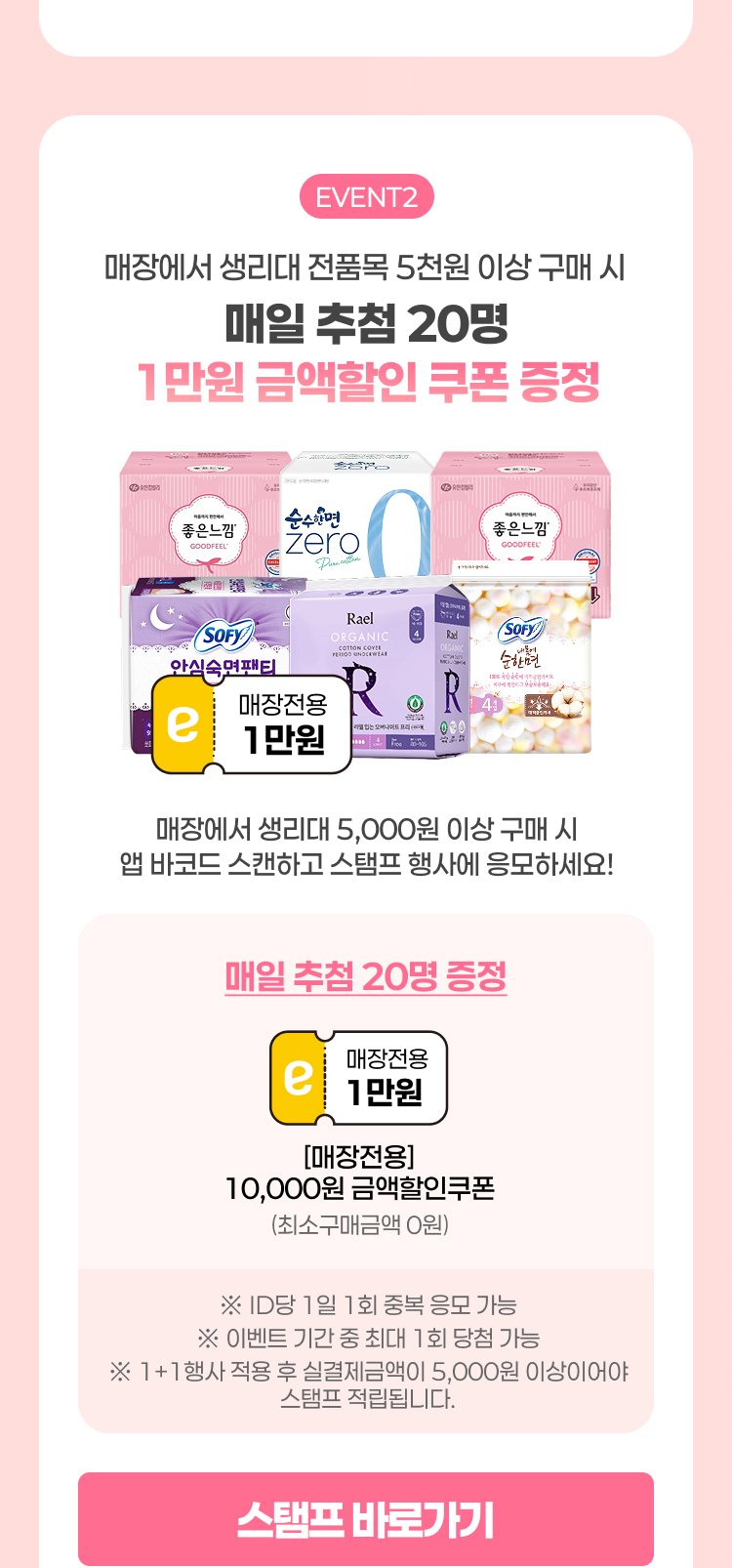 매장에서 생리대 전품목 5천원 이상 구매 시