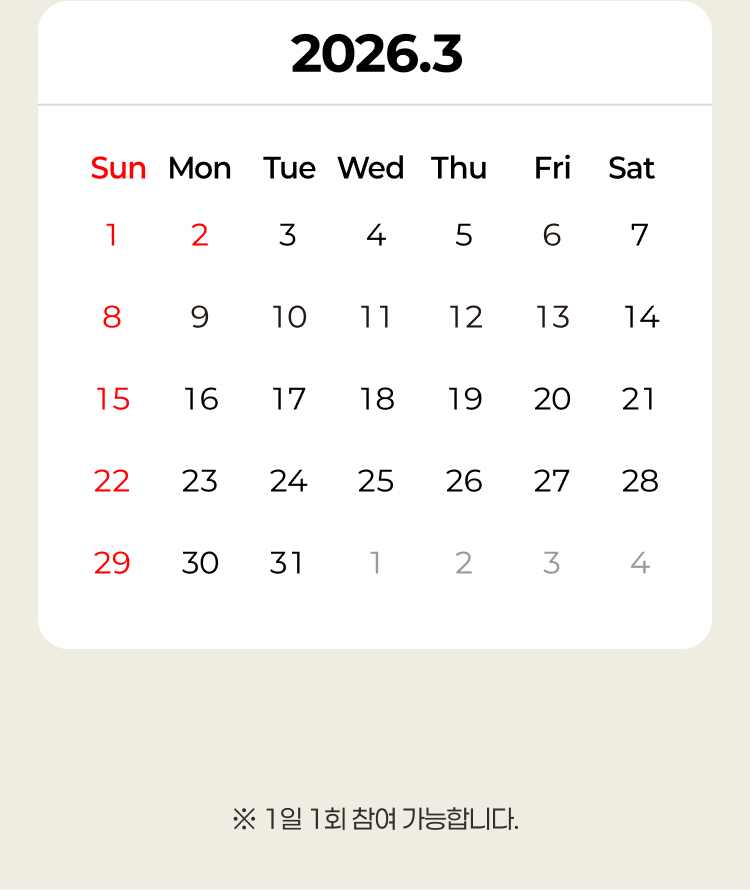 - 이벤트는 1일 1회 참여 가능합니다.
