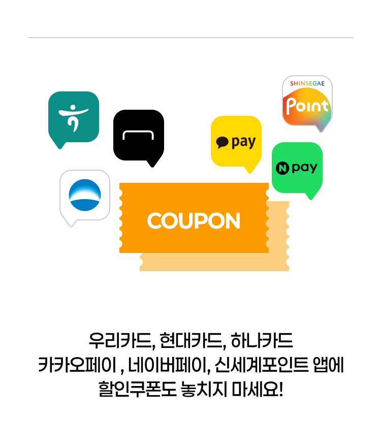 - 각 제휴사마다 이벤트 내용이 상이하여, 자세한 내용은 각 카드사 이벤트 내용 확인 부탁드립니다.