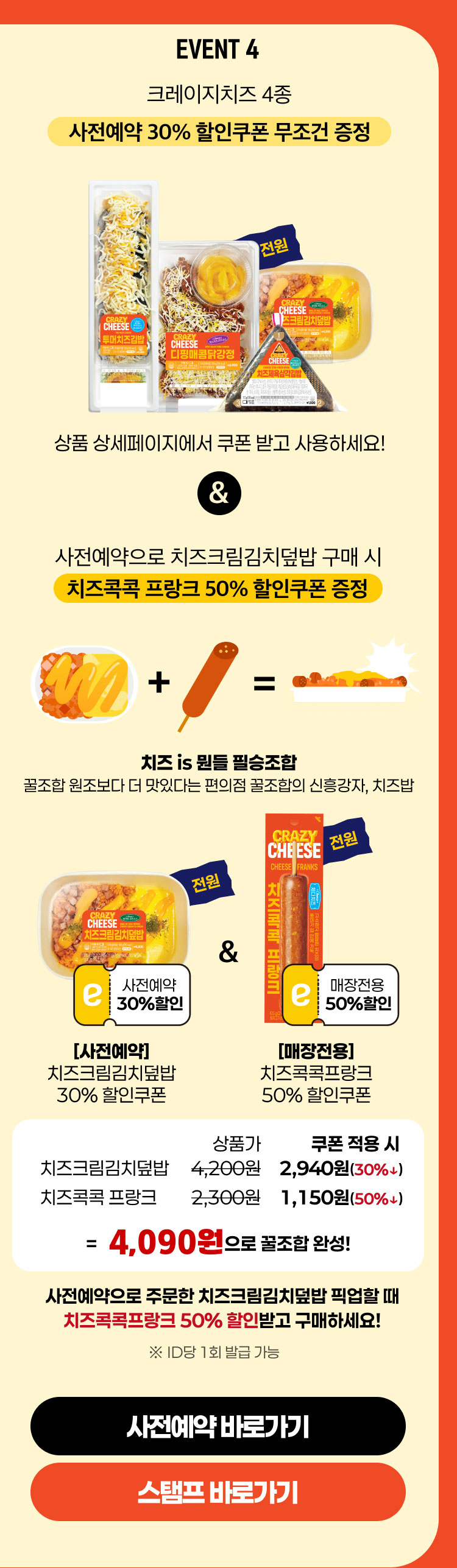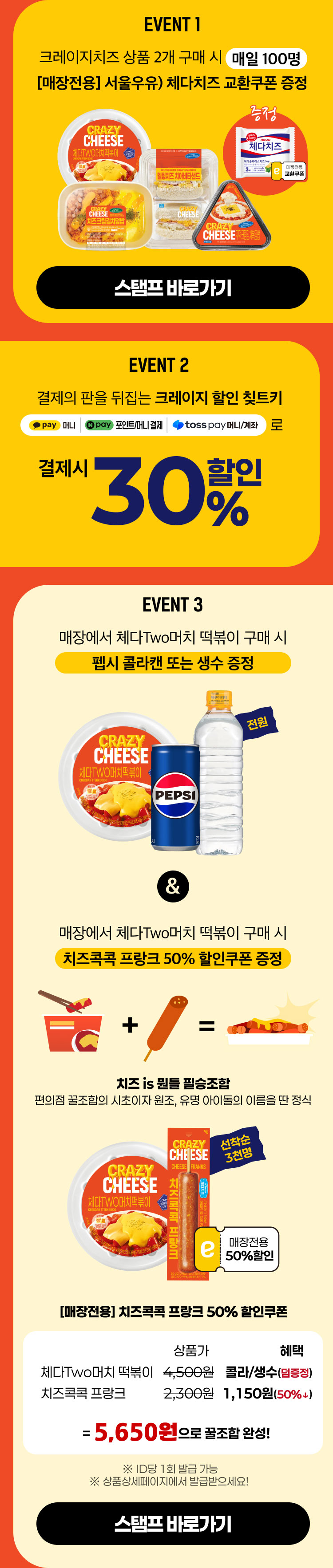 크레이지치즈 상품 2개 구매 시 매일 100명