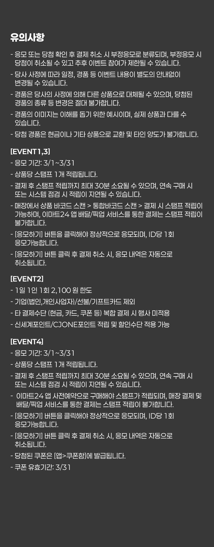 - 당사 사정에 따라 일정, 경품 등 이벤트 내용이 별도의 안내없이 변경될 수 있습니다.