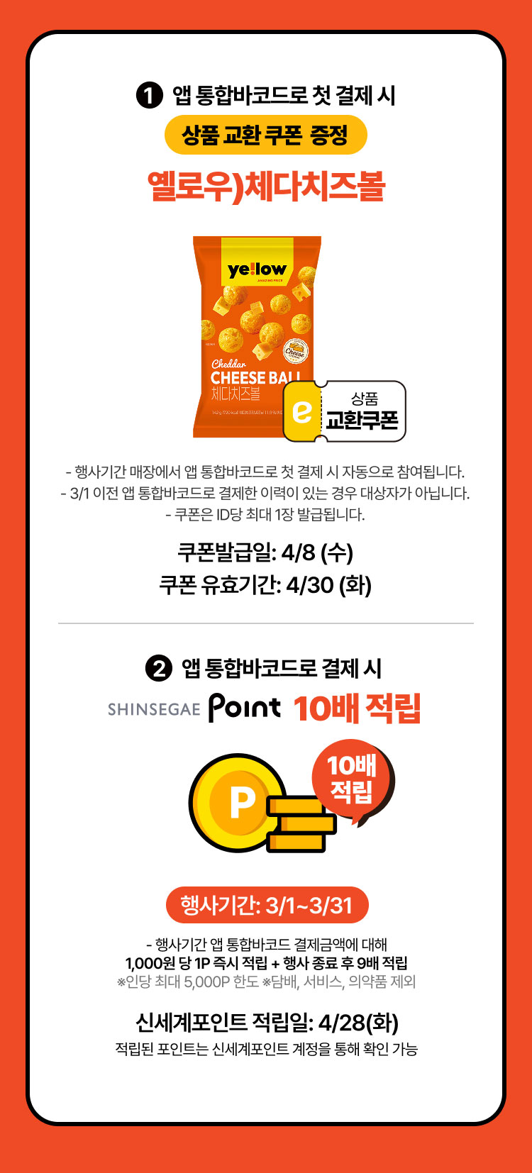 - 3/1 이전 앱 통합바코드로 결제한 이력이 있는 경우 대상자가 아닙니다.
