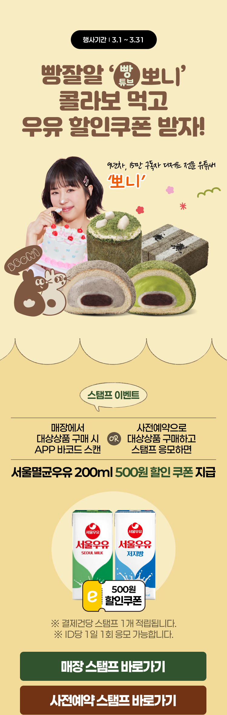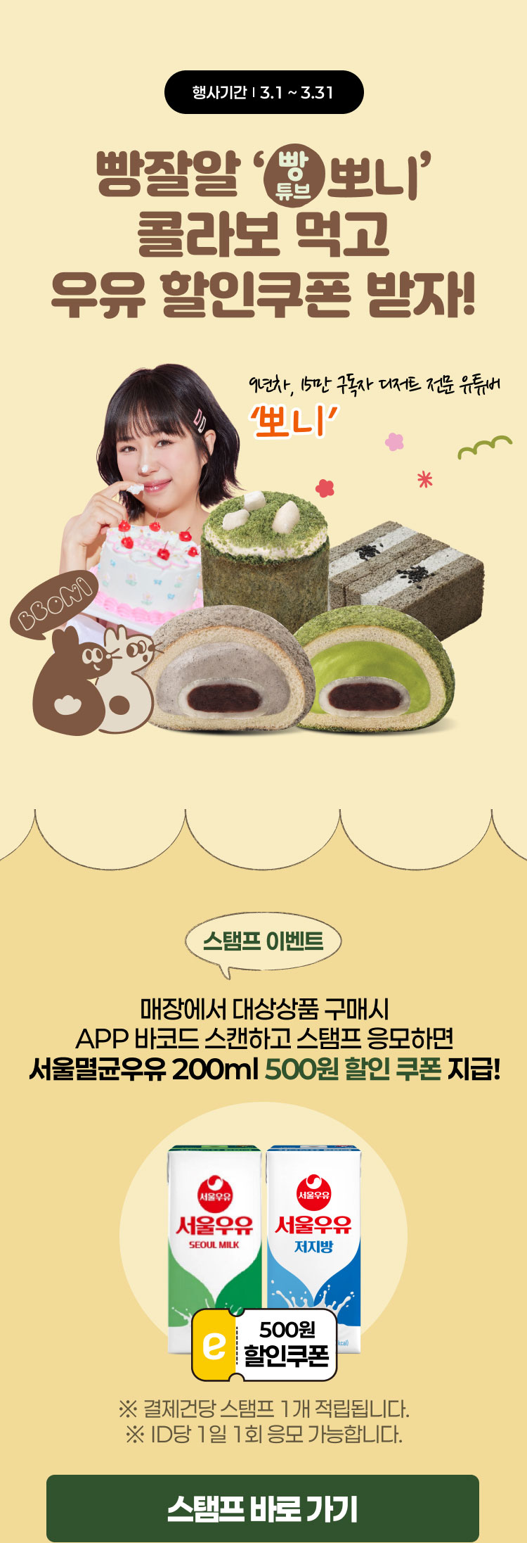 - 결제 후 스탬프 적립까지 최대 30분 소요될 수 있으며, 연속 구매 시 또는 시스템 점검 시 적립이 지연될 수 있습니다.