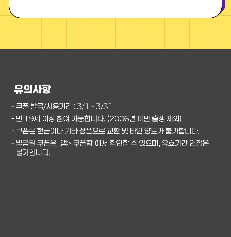 - 쿠폰 발급/사용기간 : 3/1 - 3/31