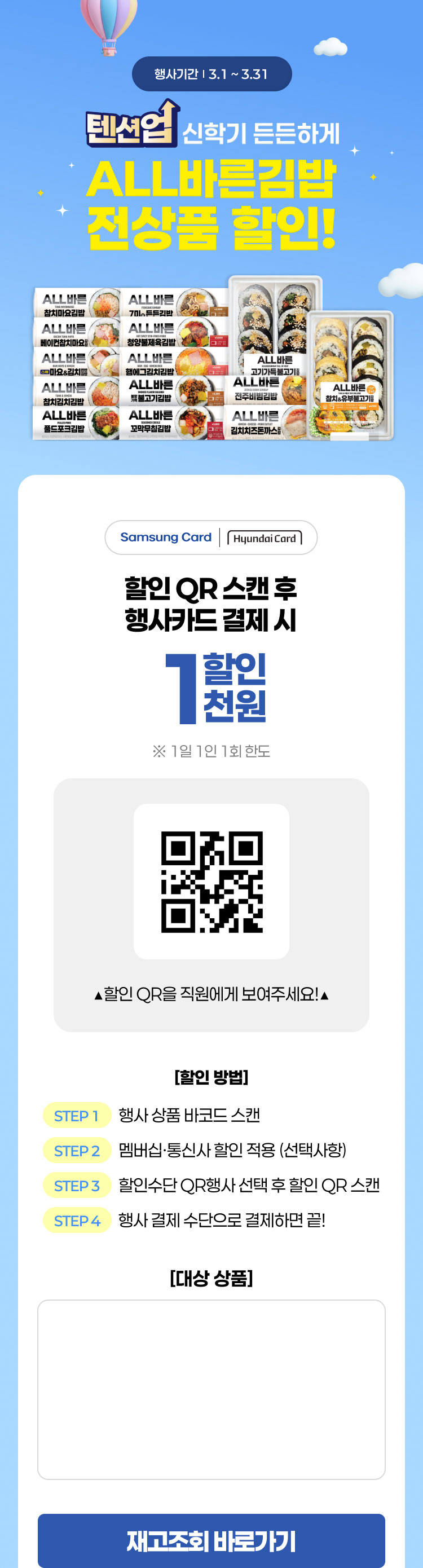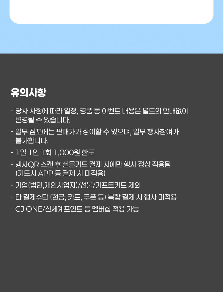 - 행사QR 스캔 후 실물카드 결제 시에만 행사 정상 적용됨 (카드사 APP 등 결제 시 미적용)