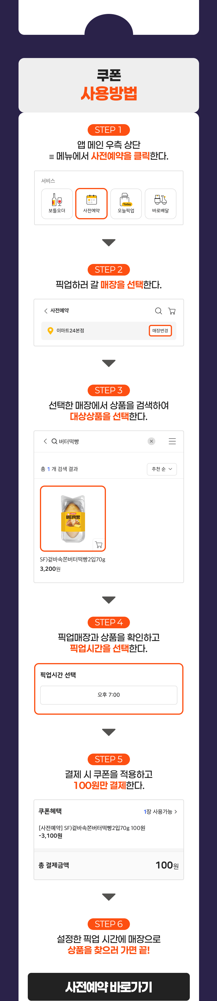 - 사전예약 서비스는 일부 점포에서만 이용 가능하며, 고객님이 위치한 지역 내 사용 가능한 점포가 없을 수 있습니다.