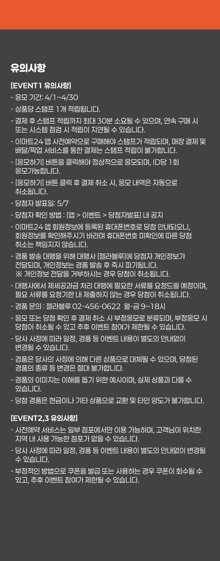 - 경품 문의 : 젤라블루 02-456-0622 월-금 9~18시