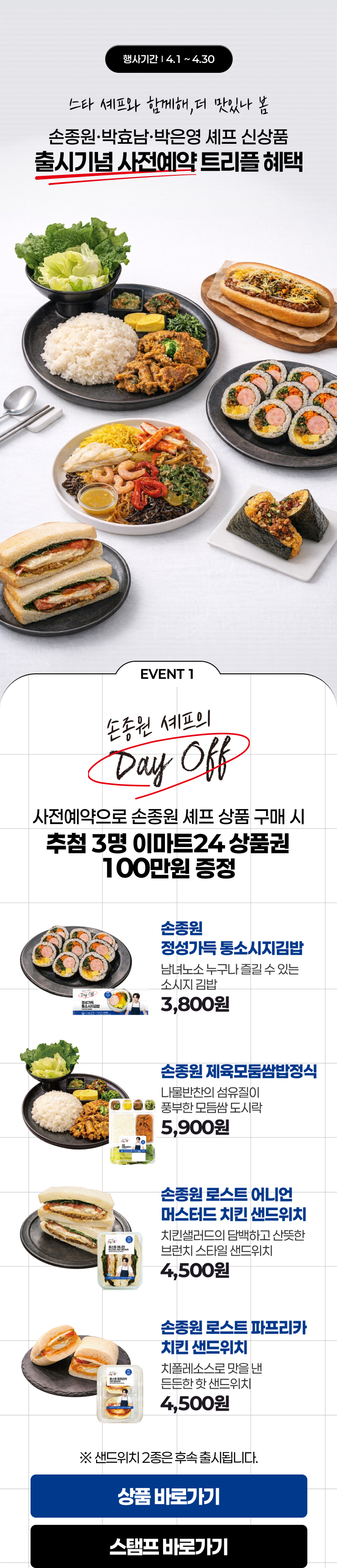 ※ 샌드위치 2종은 후속 출시됩니다.