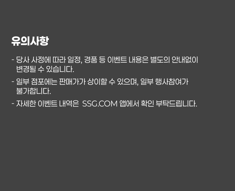 - 당사 사정에 따라 일정, 경품 등 이벤트 내용이 별도의 안내없이 변경될 수 있습니다.