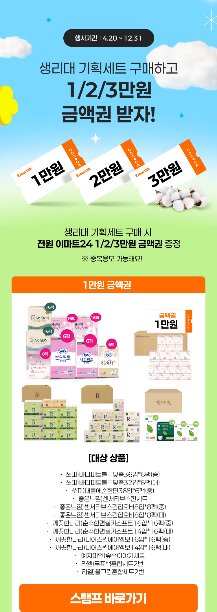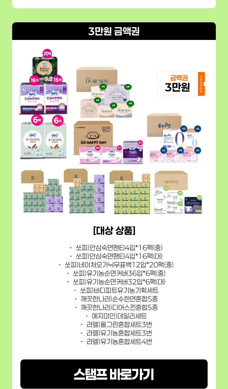 생리대 기획세트 금액권 증정 스탬프 이벤트